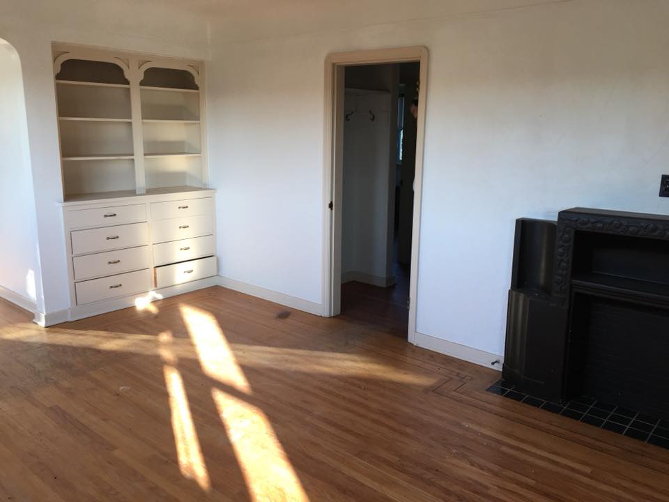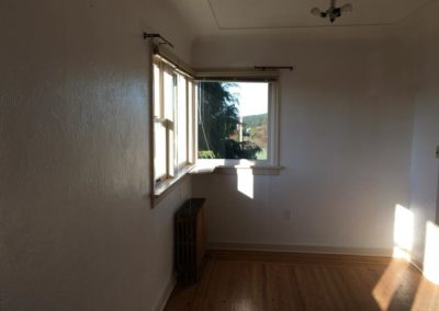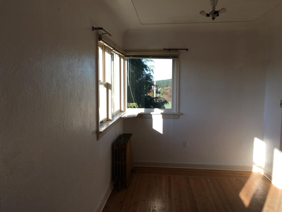 The mid-Twentieth Century building was purchased in Victoria, B.C., barged across the Strait of Juan de Fuca, hauled through a city that had stopped traffic and taken down utility lines, and settled on stacks of wood on May 10, 2017. This is what it looks like more than a year later. It remains unoccupied and without a foundation.