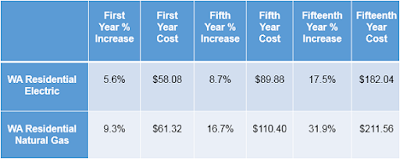 Avista Utilities, which covers the eastern third of Washington State, yesterday released the numbers of how utility costs would increase under 1631 (see below). Roughly $ 400. per year in the fifteenth year. Amazingly, the Yes campaign denies this.