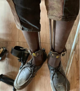 Metal rods replace crushed bones in a young miner’s legs.