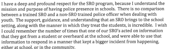 “There is a natural link between safer schools and safer communities,” Erhardt told council. When the SRO program was discontinued from 2006 to 2010, “our community saw a significant increase in crimes being committed by teenagers.”