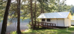 In a March interview with The Leader David Robison, PDA’s Executive Director for the past 9 years (but now retiring), said that Fort Worden’s glamping facility would be just like the one where he had stayed in Friday Harbor up in the San Juan Islands. The glamping facility there is the Lakedale Resort at Three Lakes.