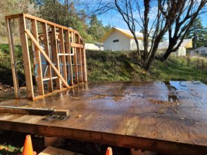 So the project sits empty, stalled out in cold, winter rains with water pooling on plywood platforms. It’s sharing that exposed, weathered plywood look with the Cherry Street Project.