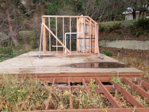The platforms were sited to utilize extant sewer and water lines from the days when the military housed personnel on this hillside. The lines were fixed and upgraded. Electricity was run to each tent platform The rest is canvas and rope, lumber, plywood, nails, screws and PVC.