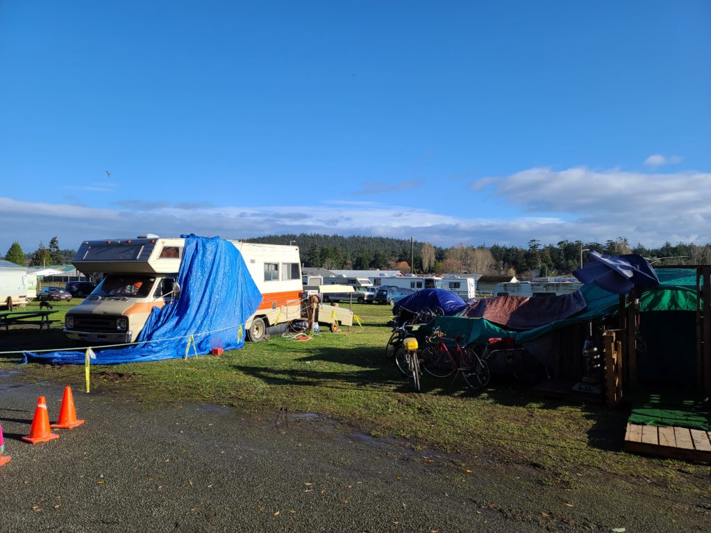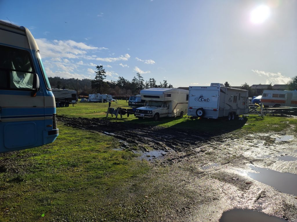 There are a lot of RVs in Jim’s pictures. In the past RV dwellers have rented spaces at the fairgrounds and at Fort Worden for the winter [Don’t assume that all of those people in RVs are addicts.] The county, for a number of years now, has not allowed anyone to create a new RV court to rent spaces to low income. It is in Jefferson County code. The Washington state legislature, a couple of years ago, passed laws intended to prevent this kind of exclusion by zoning, but no one has challenged the County or the City of PT, which has similar restrictions.