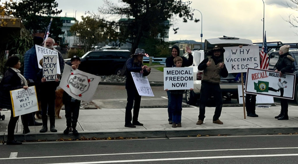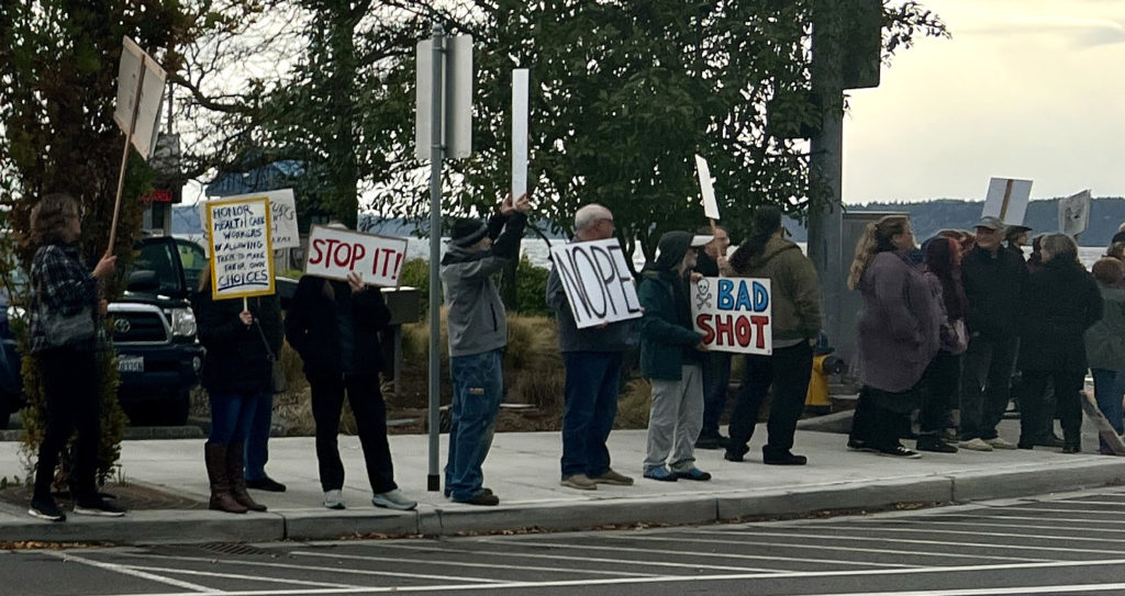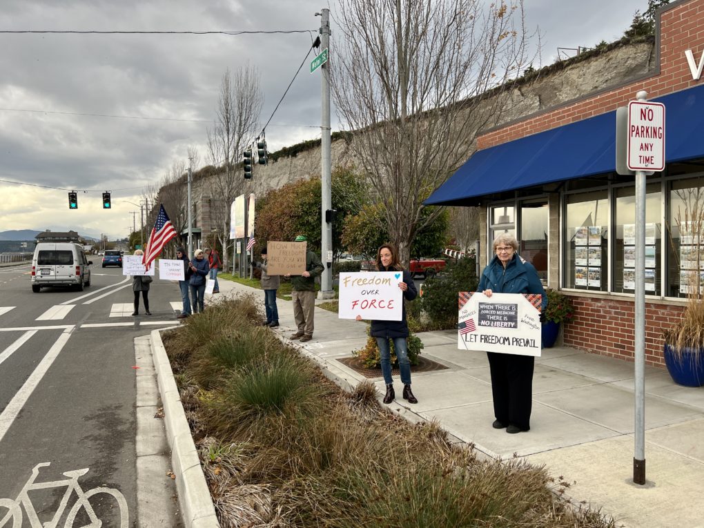 The group was supported by the overwhelming majority of motorists, who honked horns and thumbed-up agreement with the action. The handful of negative reactions were responded to with calls of “We love you” and “God Bless!” One of the attendees remarked “This is spiritually uplifting. I feel so much better just being here.” There were over a dozen children in attendance, most of them more aware than our local electeds of the terror of coerced medical interventions.
