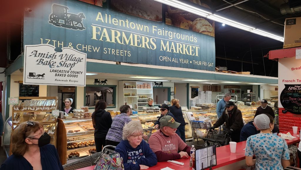 Life seems normal here. One can shop at the historic Allentown Fairgrounds Farmer’s Market. No need to cover your face to stock up on smoked pig’s ears or smoked beef trachea. And don’t pass up the fresh scrapple, a Pennsylvania Dutch delicacy. Yum.