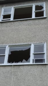 A neighbor ran to her own window when her son yelled about a refrigerator going airborne. She saw two teenagers in the act. She has seen teenagers in the derelict building on two to three previous occasions and had called the city. A crew eventually boarded up an open ground floor window and pushed the rear fence closer to the building. That window had been wide open for two years. I had seen evidence that it was being used to access the building. The chain link fencing was never locked tight. There has always been an opening at the rear of the building, conveniently in a blind spot—a spot near the place in the trees with the piles of empty beer cans. Teenagers pulled the fence open and pushed in two large plywood sheets and went to work.