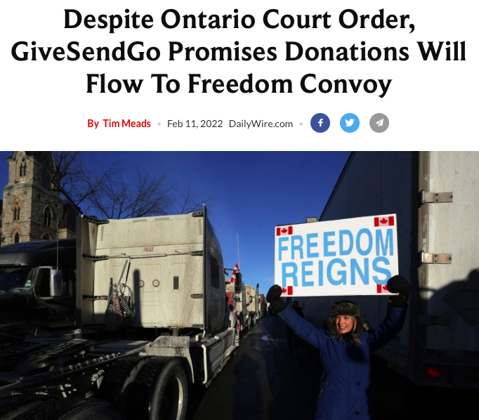 Now Trudeau is pretending that he’ll get the U.S. government to prosecute all Americans contributing to the fund. The Empire on our side of the border cannot stop the support, but it can continue the smears, lashing out with typical disinformation and censorship.