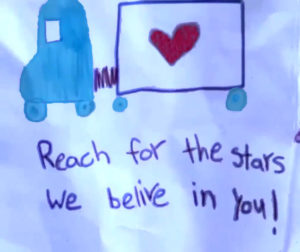 … with schoolchildren writing notes of love and appreciation to the truckers, thanking them for making a stand for freedom and their futures.