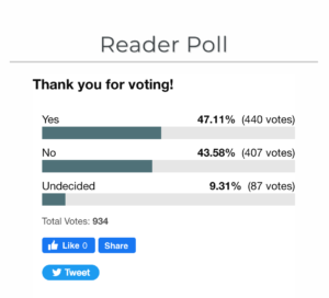 In a PDN poll, readers were asked “Will you feel safe enough to go indoors without a mask if/when the state removes its mandate?” At the time of this screen shot on February 15th, 934 readers had responded. If the poll results accurately reflect our communities, nearly half have bought into the madness, fearful that taking off the masks will be unsafe.