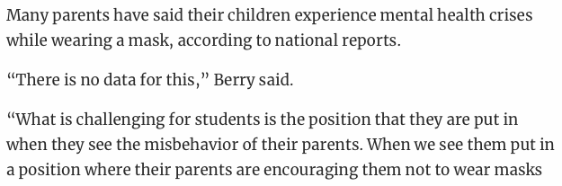 The second that stands out for me is the full-blown delusion that children only have issues with masks if their parents don’t support mask use. A classic case of abusers denying their abuse.