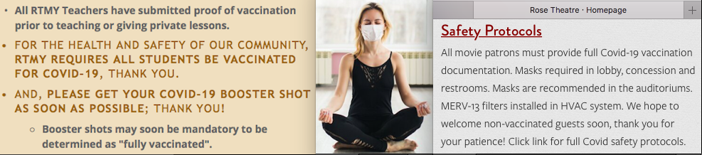 When the initial extreme lockdowns eased, things paradoxically got harder for those never locked-down as mask and vax mandates began rolling out. Soon after reopening, Room to Move Yoga and the Rose Theatre excluded everyone unwilling to “show papers”, maintaining restrictions above and beyond Health Department orders to this day.