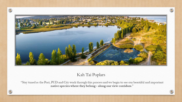 By contrast, in a comment submitted ahead of the April 12 Stakeholder Committee meeting, committee member Joni Blanchard pushed back against the narrative that any future PUD trenching would need to kill the poplars. (Consulting arborist Katy Bigelow was contracted by the Port to provide assessment reports in 2013 and again in 2022.)