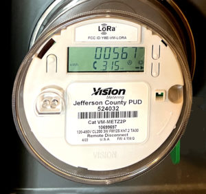 One of approximately 40 Smart meters installed to date by Jefferson County PUD. The county-wide rollout begins Sept. 19th.