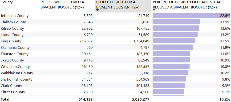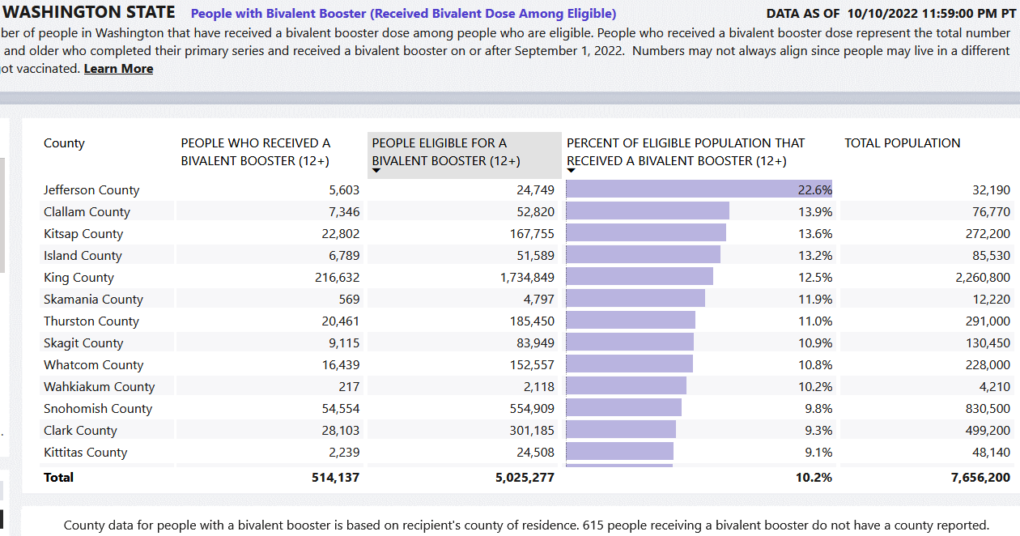 One other thing I’ll toss out: Jefferson County is different in one other way: I saw that there’s 22.6% bivalent boostering, which is more than twice the 10.2% in all the other counties in this state.