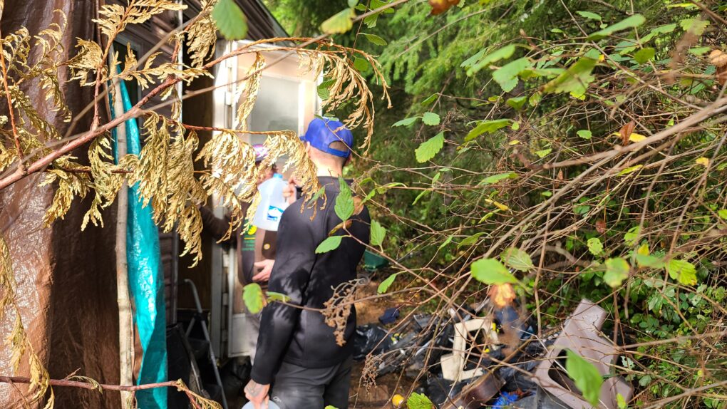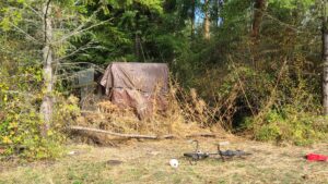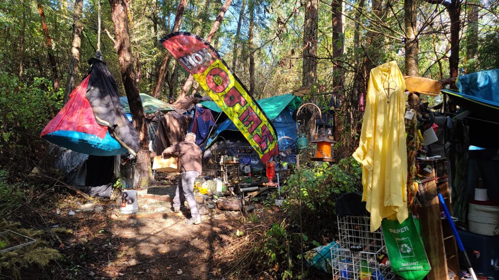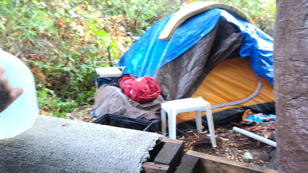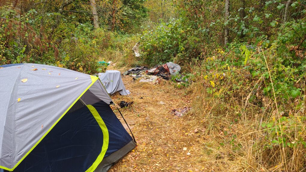 Jefferson County’s Caswell-Brown homeless shelter marks the entry to the Fentanyl Forest. It houses fewer than twenty people remaining from those relocated from the chaotic, tragic Fairgrounds camp. Managed under long-term contract by OlyCap, the camp is a gated community in the Fentanyl Forest, but still part of its surroundings.