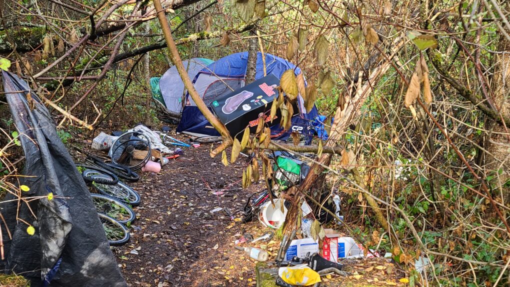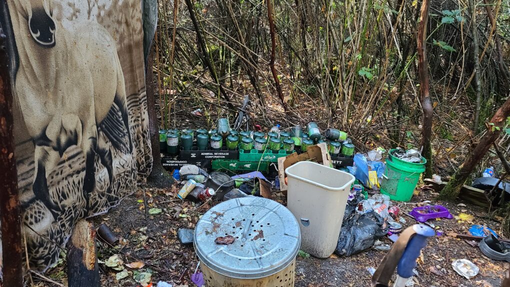 At least with addicts inhaling the fumes of burning Fentanyl off tin foil instead of injecting heroin there are fewer needles littering the ground. But don’t forget alcohol. There are still plenty of liquor bottles and beer cans around most campsites.