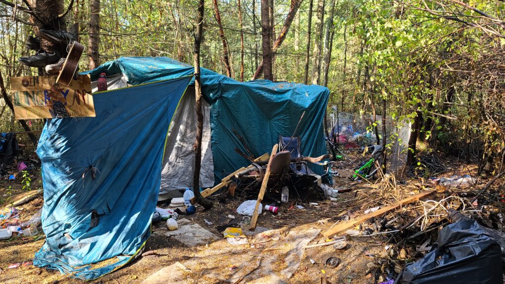 Those kicked out of the county’s Caswell-Brown encampment on Mill Road find refuge there. Colonies of addicts have been living in the dark woods for years, rotating in and out of campsites cleared in the forest, piling up unimaginable heaps of trash and debris.