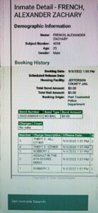 French’s booking included 1 count of assault, 2 counts of theft and 2 counts of robbery.