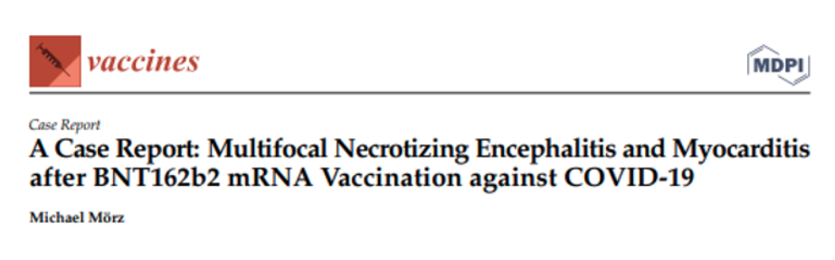 Dr. Mörz’s article provides compelling and sobering evidence of the potential of mRNA vaccines to cause serious harm to the brain and heart — namely, vasculitis, necrotizing encephalitis, and myocarditis. His article may prove to be one of the most pivotal articles to be published in the conventional medical literature during the COVID-19 pandemic—because of its potential to change attitudes about the safety of mRNA vaccines against COVID-19.
