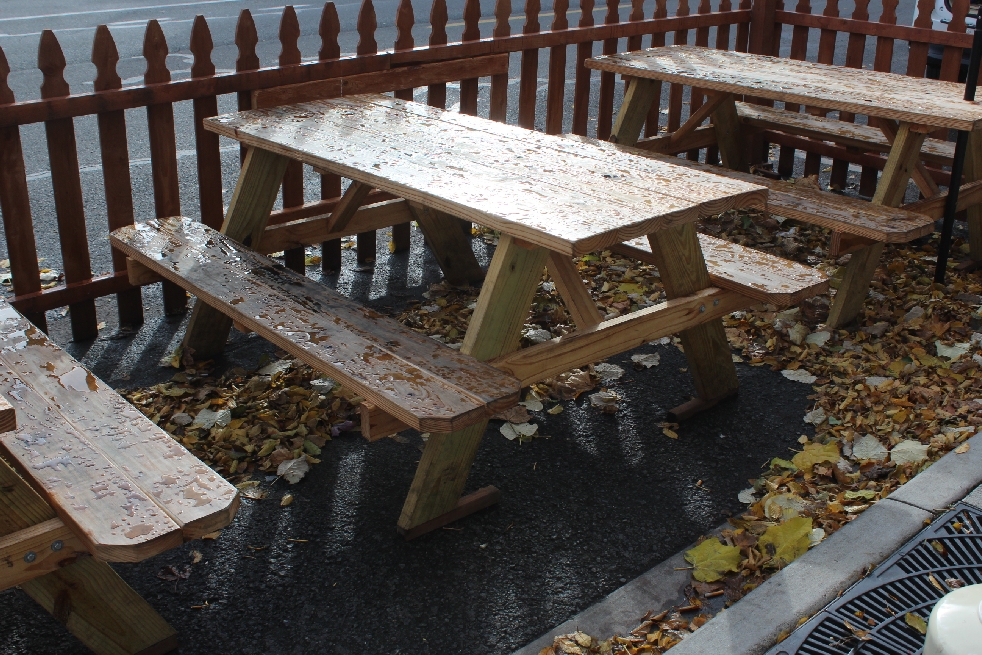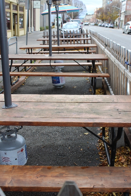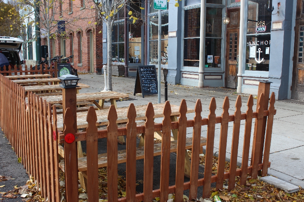 Also on Water Street, Tommyknockers has maintained its long-standing installation of picnic tables and a picket fence, even though it has outdoor seating in the back of the restaurant. It replaced three of its four umbrellas with infrared heaters that put propane bottles at diners’ feet — and in the street.