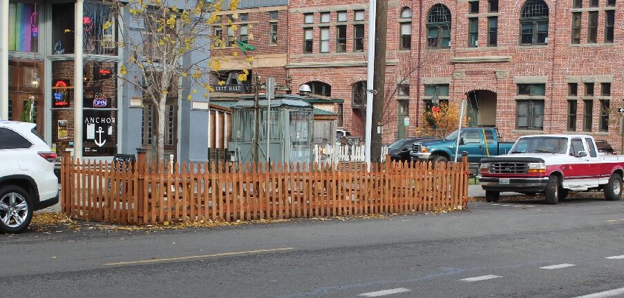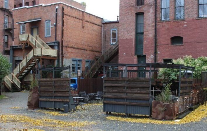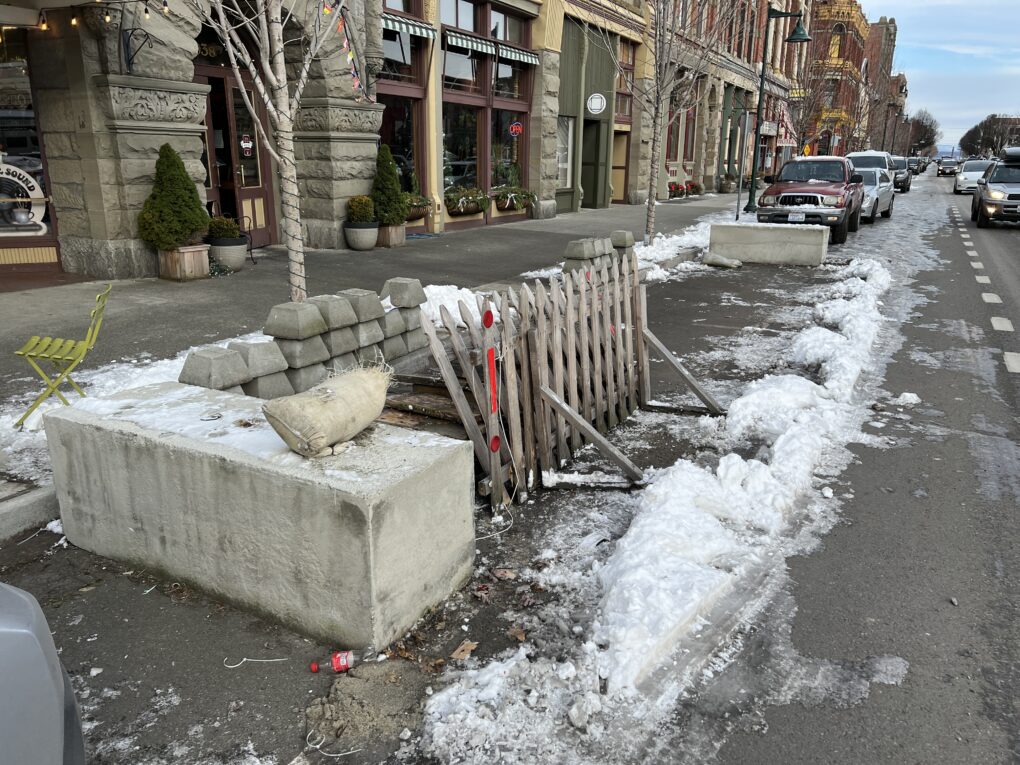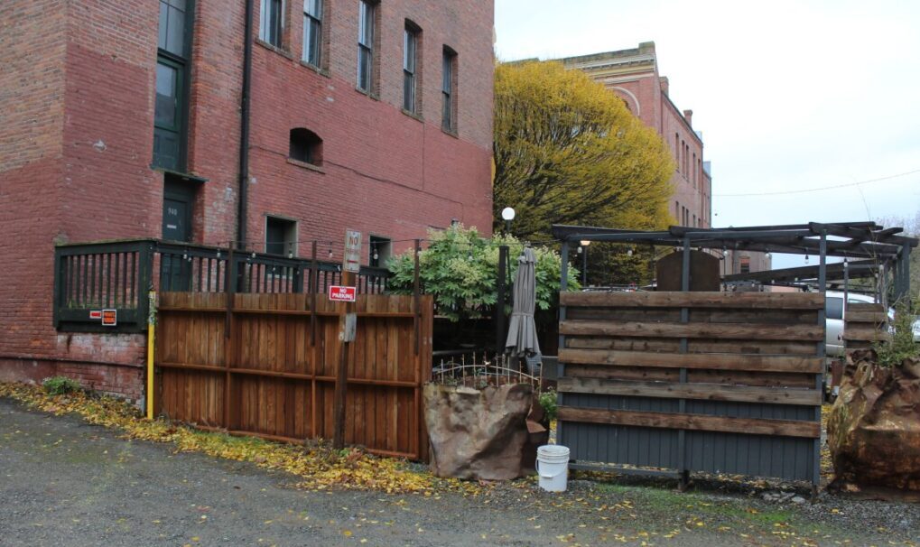 Nearly two years ago, in February 2021, City Manager Mauro signed off on a no-fee agreement for the Cellar Door (off Tyler Street behind the Mount Baker Block building) of three city-owned public parking spaces to be used “during COVID-19 Restricted Dining.” While Mauro was assuring downtown merchants that this “temporary fix” would never be made permanent, the Cellar Door owner was led to believe their street use would be a permanent gift, and as a result invested in infrastructure work unlike the temporary tents and tables that other restaurants put in the streets. They graded the area and built high-walled structures. The end result created problems for delivery vehicles that frequent the alleyway, some near-accidents, and on at least one occasion led to an altercation that resulted in police intervention.