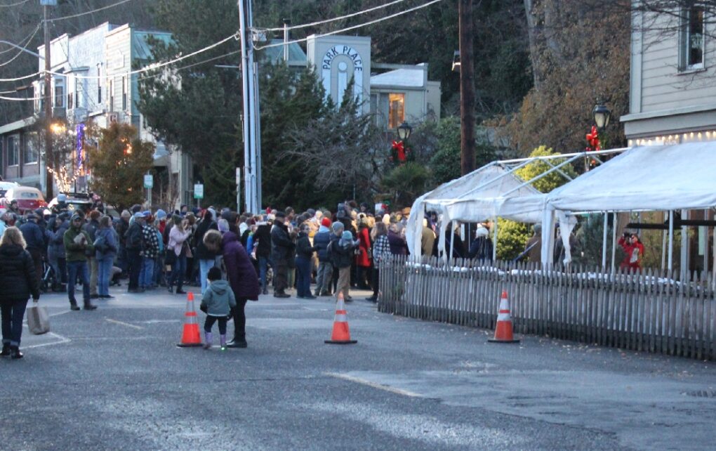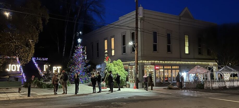 I suggested that any coverage of Santa arriving at the fountain on December 4th would pretend the tent wasn’t there. As it turns out, the Peninsula Daily News did just that, cropping their photo to avoid the embarrassing tattered elephant in the room entirely. The Leader didn’t even cover the annual event. Here is what “JOY IN PT” actually looked like in our famously picturesque seaport on December 4th, as families awaited Santa’s arrival, and after the traditional community tree lighting: