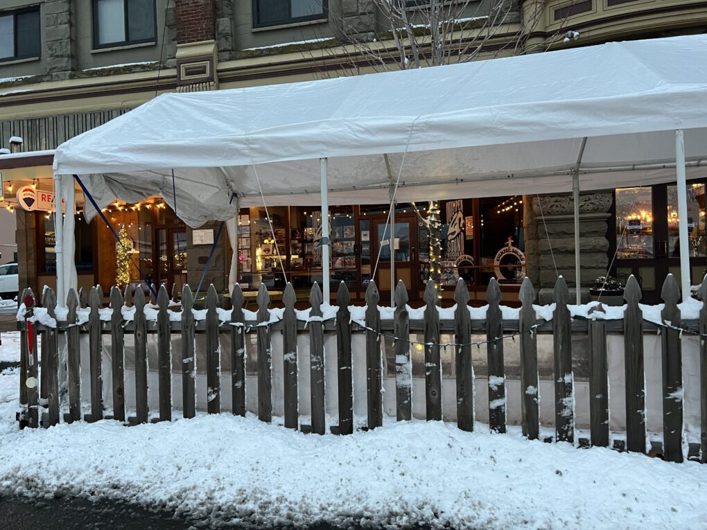 I got a little chuckle about the opposition to taking them down from the owner of the Old Whiskey Mill. Last year in the winter, my wife and I dined in the tent outside that establishment a couple of times. Both times, it was a miserable experience, with cold winds and rain, and ineffective heaters connected to the indoors by extension cords strung across the sidewalk.”