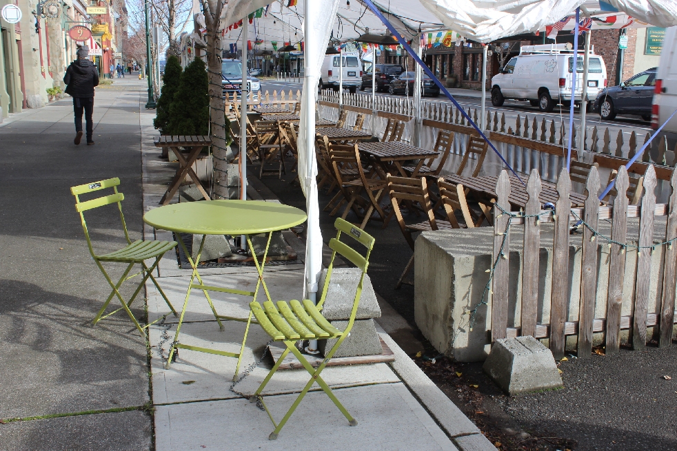 A couple of new streateries sprang up following approval of that May extension — seating in the street outside the Silverwater Cafe on Taylor which took out their handicapped parking spot, and a new installation at PT Anchor on Water Street near City Hall. The Silverwater removed their outdoor tables after the summer season, while Anchor’s streatery is still in place.