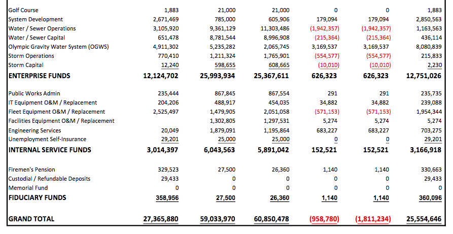 Look at all the red ink in the following table from the city’s budget for the coming year.