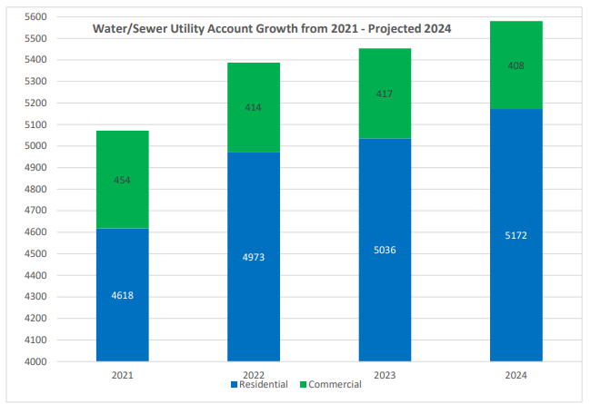 The city’s utility account suggests a significant loss of businesses and commercial activity since 2021, with commercial accounts shrinking from 454 to 408.