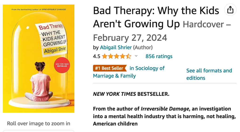 An excellent resource on this subject is Bad Therapy: Why the Kids Aren’t Growing Up by Abigail Shrier. It talks about what I have seen in schools regarding SEL, how it impacts families, and how it, and related practices, increase anxiety and hurt kids’ mental health and development.