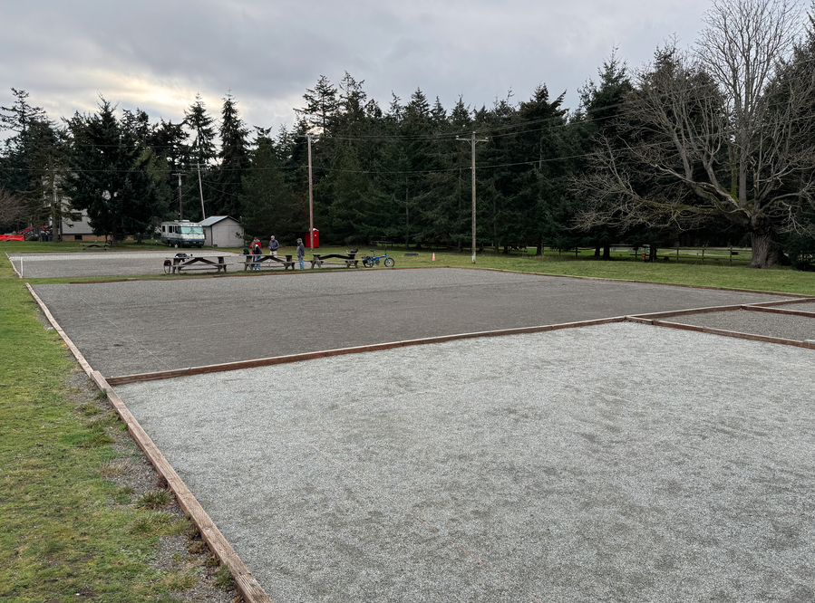 Pétanque court installed on back lot.
