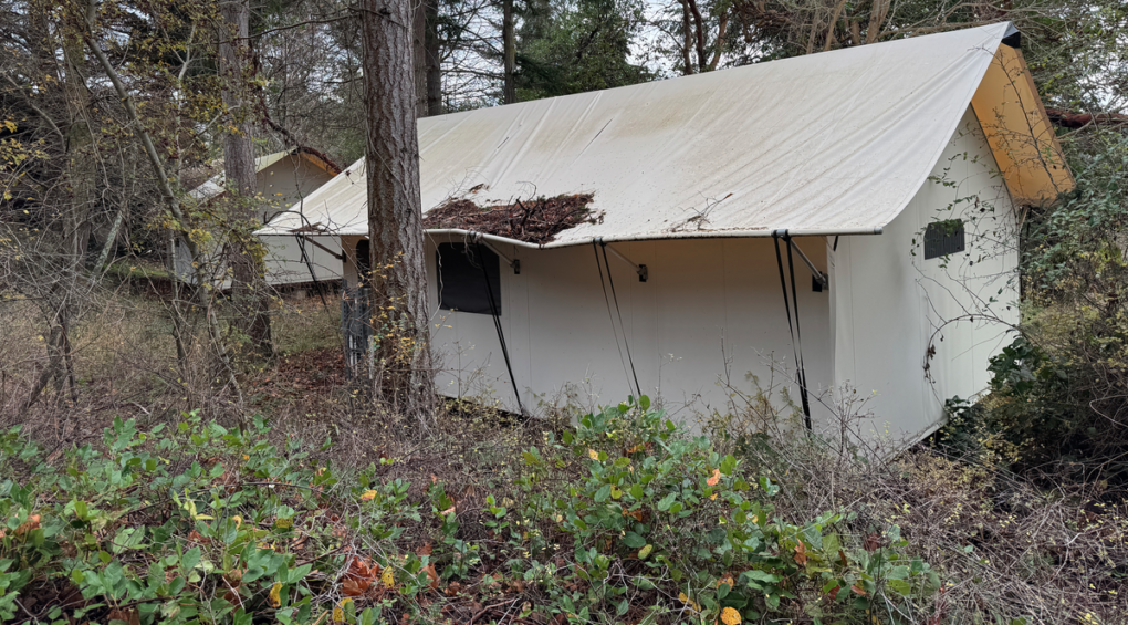 The $2 million glamping project featured these “luxury” tent sites projected to cost $125,000 each. Installations were never completed and though their expected life is ten years, only a few years post-installation the unused tents are already deteriorating.