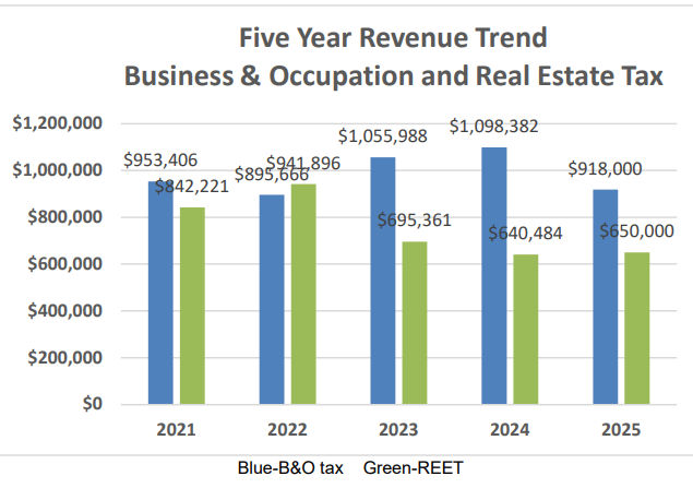 But the stagnation in the underlying economy can’t be ignored. Revenue from the Business and Occupation and Real Estate Excise Taxes are actually predicted to decline in 2025.