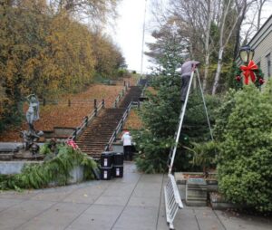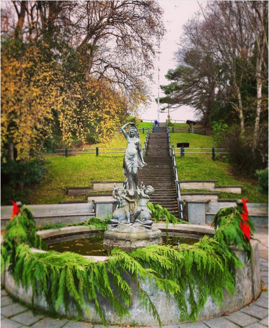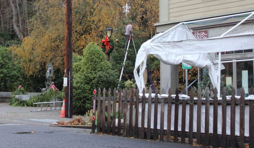 This structure sits right at the entry to one of our most photographed city landmarks, Haller Fountain Plaza, a stone’s throw from the iconic fountain, the historic stairs to Uptown, and the site of the annual Christmas Treelighting Celebration. This photo is from Port Townsend Main Street Program’s “Holidays in Port Townsend” page on their website, announcing this year’s tree lighting on December 3rd.