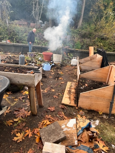 It was obvious that the worm migration centered around this bag of potting soil with worms still in the bag. We burned the bag of soil and all the plants in the garden, and all the wooden raised bed boards and stakes.