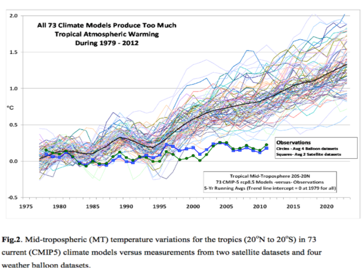 When all the dozens of temperature prediction models driven by CO2 levels are run with real data starting in 1979, they grossly over estimate the global temperatures.