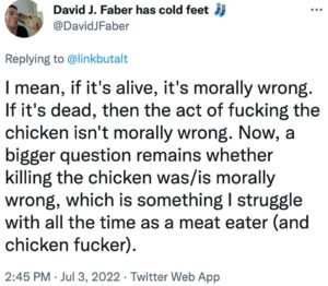 At that meeting Katie Daviscourt, a reporter with Rebel News, confronted Mayor David Faber with his own words about having sex with dead chickens and a dog, and declaring that, “As mayor, I am legally required to be a pervert and deviant.” Faber has yet to explain using his title as mayor in connection with such statements.