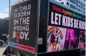 Daviscourt checked to make sure the pool would be open. It was, but minutes later, a sign went up banning media from entering. The doors were locked and it went dark inside. When Daviscourt knocked, a business card for the Y’s communication director along with the sexist pink and blue banner of the trans movement (remember when boy/girl stereotypes were condemned?) were slipped through the door. Minutes after that the Y called police and the women were ordered to leave and threatened with arrest if they returned. Daviscourt’s video report may be viewed here.